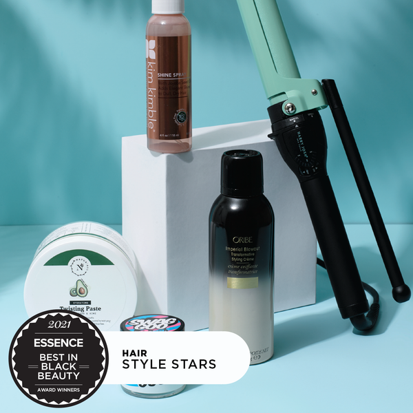 01Hair: Style StarsKim Kimble Shine SprayAside from providing high-octane shine, this gem serves as a thermal protectant, making blowouts fast and healthy. ($25, shopkimkimble.com)NaturAll Hydrating Twisting Paste This world-class twisting paste hydrates without flaking. ($17, naturallclub.com)The Doux Swag Goo Edge Control Gel With aloe and vitamin E, the gel treats edges while providing all-day hold. ($13, drugstores) Oribe Imperial Blowout Transformative Styling Crème Look no further than this must-have product for silky, weightless blowouts. ($68, oribe.com)Harry Josh 3-in-1 Ceramic Curling Iron, 1 Inch This triple-threat iron works interchangeably as a wand, marcel and curling iron. ($175, dermstore.com)