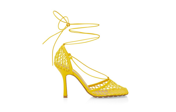 2021 fashion trends have been nothing short of versatile and nostalgic, with fashion lovers channeling trends, patterns, and accessories from ’70s fashion. While trends for the spring have widely consisted of corsets, plaid prints, and tie dye, summer trends are hitting a different note, and according to social media, stylish mesh heels are up next. Earlier this week, after photos of both Rihanna and Nicki Minaj went viral on several platforms, fashion lovers everywhere took notice of their matching shoes—a lace-up mesh-patterned heel crafted in both a bright yellow and off-white hue.