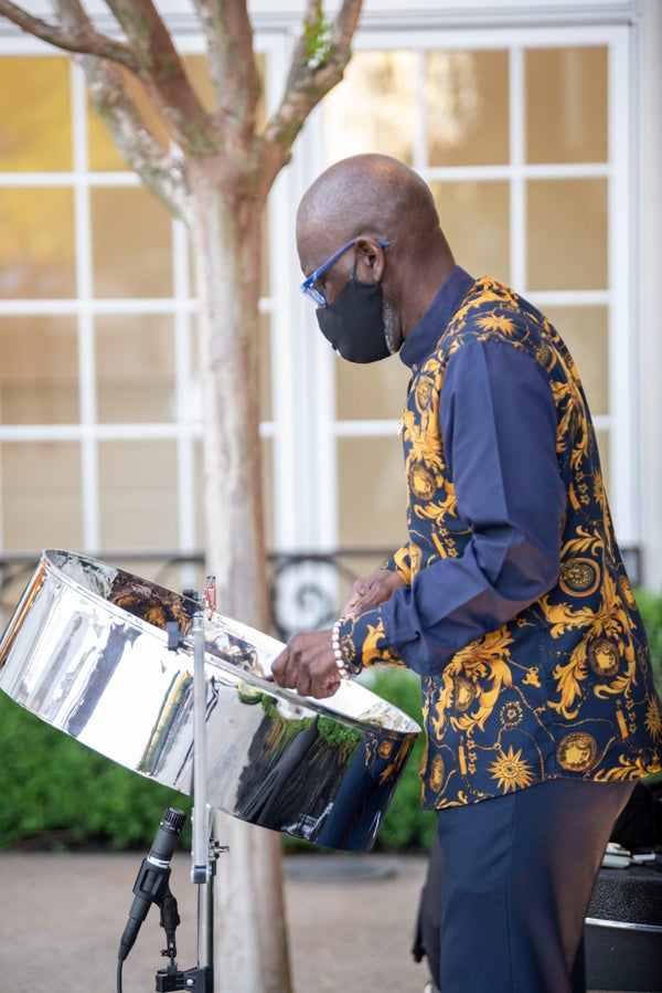 09Steel Pan PartyTo help honor Shakeel’s Trinidadian roots, the couple made sure to have a live steel pan (or steel drum) player present at the venue’s courtyard during cocktail hour. Everyone enjoyed a premium open bar alongside the music, with a “His” Moscow mule drink and a “Hers” spicy margarita for guests.