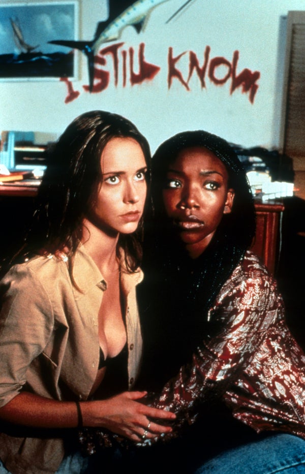 25I Still Know What You Did Last SummerThis 1998 slasher sequel adds an in-her-prime Brandy Norwood to the mix. After becoming the sole survivor final girl amongst her group of friends after their hit-and-run victim picked them off for vengeance years prior, Sidney (Hewitt) takes her new college crew on an all-expenses-paid vacation to The Bahamas, though still suffering from PTSD. Once there, history repeats itself and she, Karla (Brandy), and Karla’s boyfriend Tyrell (Mekhi Phifer) must do their best to survive their “relaxing” retreat.