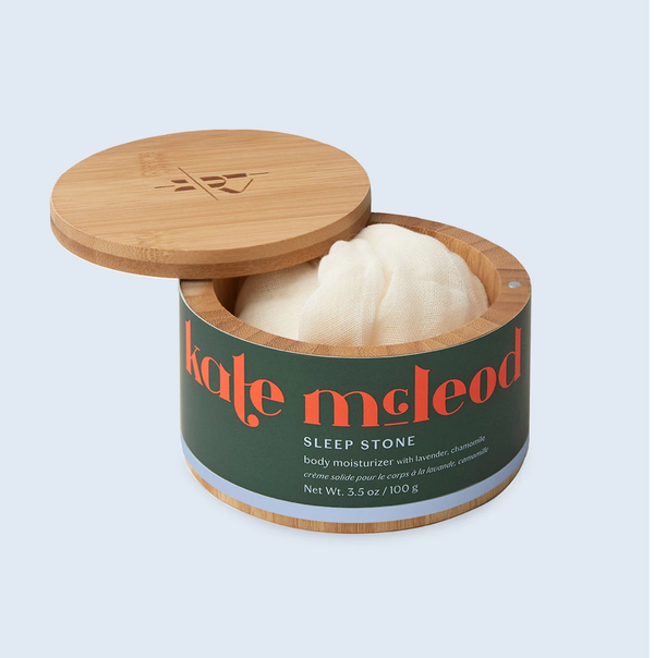 available at vitruvi.com $119 BUY NOW 02SOOTHE AND HYDRATEThis moisturizing balm, with lavender and chamomile, provides a wonderful opportunity for a pre-bedtime ritual.It keeps your skin soft and healthy while calming your mind and body for a restorative snooze. It’s an overall better way to moisurize because it’s waterless, plastic-free, so zero waste, with healthy ingredients that hydrate effectively.Kate McLeod Sleep Stone