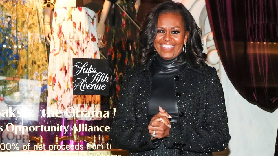 Obama recently attended the annual holiday window unveiling for Saks Fifth Avenue as this year’s display featured The Girls Opportunity Alliance, a program created by the Obama Foundation. While the storefront was decorated beautifully, it was Mrs. Obama’s glamorous ensemble that stole the spotlight. She wore a custom, shimmery black set designed by the American Womenswear Designer of the Year, Christopher John Rogers, and paired it with the most sleek, leather bodysuit from Wolford underneath.