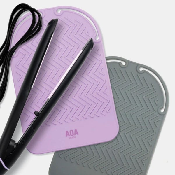 01AOA Heat Resistant Hair Tool MatNever burn your table or counter tip again with AOA’s Heat Resistant Hair Tool Mat. Withstanding up to 460F degrees, the high-quality silicone protects your surfaces from heat-styling tools while also keeping your tools on the counter without slipping.