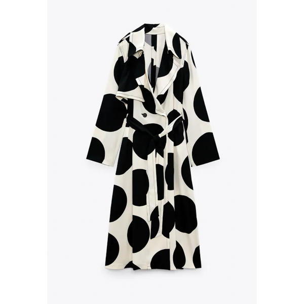 01Zara Polka Dot Trench CoatJust imagine how a pop of colorful accessories (such as red, green or yellow) will pop against this print.